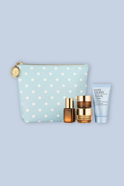 תיק איפור מעוצב + 4 מוצרים בגודל מיוחד מבית ESTEE LAUDER מתנה